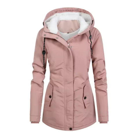 Xavia | Lang Koselig Jakke For Damer — Hette Og Kontrastfôr
