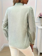 This blouse features a timeless checkered pattern enhanced by an elegant bow detail. Its long sleeves make it ideal for all seasons. Easy to match, it is suitable for both casual and professional occasions.