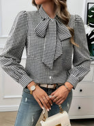 WHY CHOOSE THE CHECKERED BLOUSE WITH ELEGANT BOW TIE?