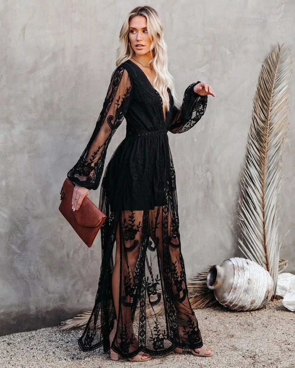 WHY CHOOSE THE LONG BLACK EMBROIDERED DRESS WITH A SLIM AND MODERN SILHOUETTE?
