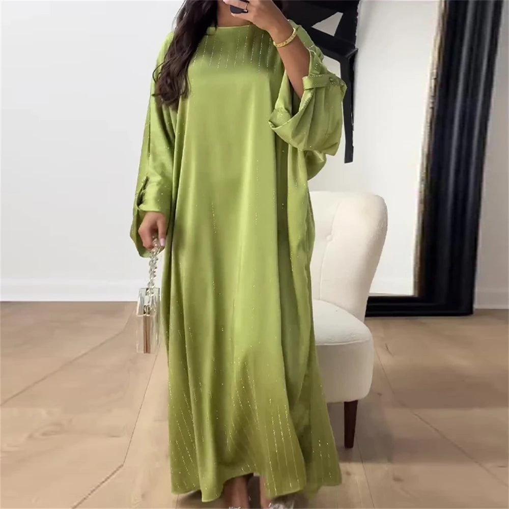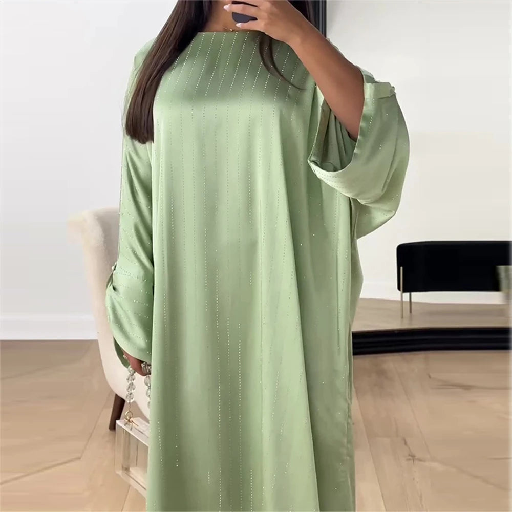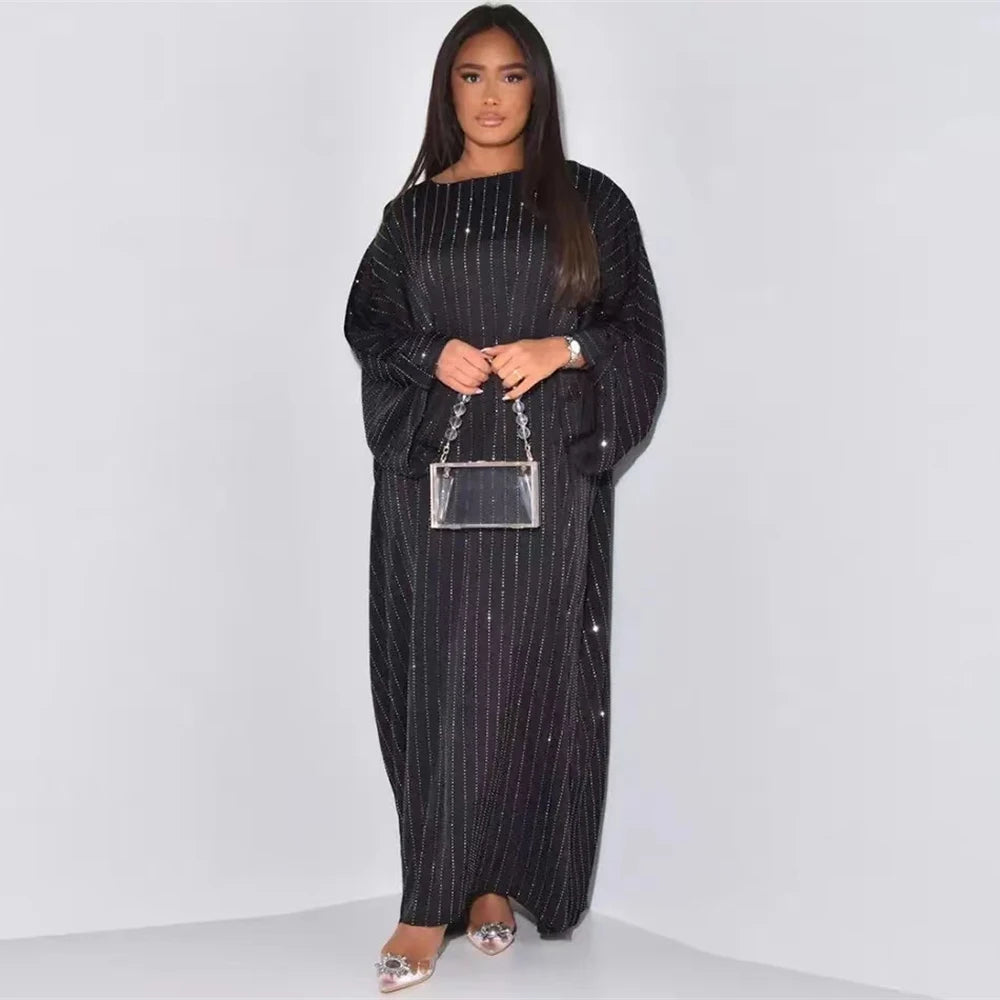 Tämä ilta-abaya yhdistää ilmavan leikkauksen eleganttiin raidalliseen muotoiluun. Sen avara siluetti takaa täydellisen mukavuuden, kun taas sen hienovaraiset yksityiskohdat korostavat tyyliäsi huomaamattomasti.