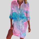 Tässä napitettu kesämekko pitkillä hihoilla tarjoaa sujuvan ja mukavan leikkauksen. Sen monipuolinen muotoilu soveltuu erilaisiin tilaisuuksiin. Saatavilla useissa väreissä ja koossa kaikille sopivaksi.