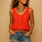 Ce top sans manches à col en V offre une coupe ample et confortable. Disponible en plusieurs couleurs, il s'adapte à toutes vos tenues. Idéale pour les journées chaudes, il allie style et aisance.