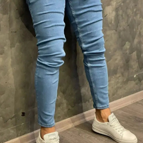 Questo pantalone in denim aderente offre una vestibilità che esalta la silhouette. Progettato per unire eleganza e comfort, si adatta perfettamente sia ai look casual che a quelli più eleganti. Disponibile in diverse colorazioni, si adatta facilmente a tutti i tuoi outfit quotidiani.