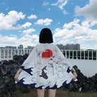 Deze kimono-jack voor dames is versierd met een verfijnd patroon van Japanse vogels, symbolen van harmonie en gratie. De ruime en vloeiende snit zorgt voor optimaal comfort, of het nu gaat om een casual look of een meer geklede outfit.