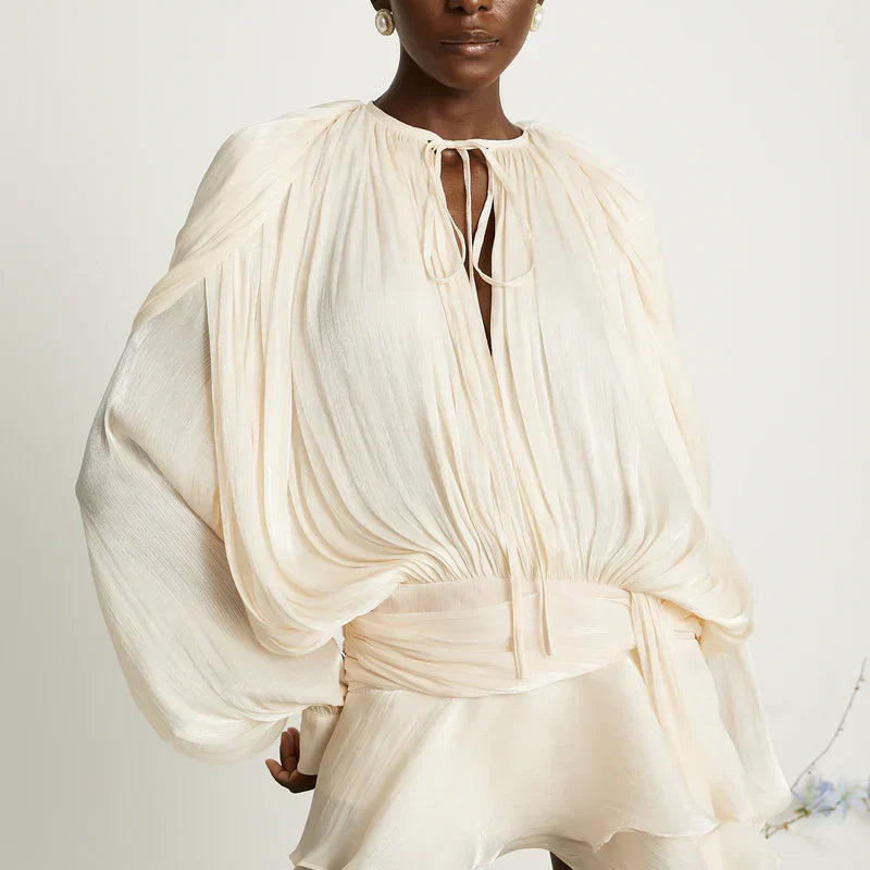- Vloeiende mouwen die elegantie en beweging brengen.