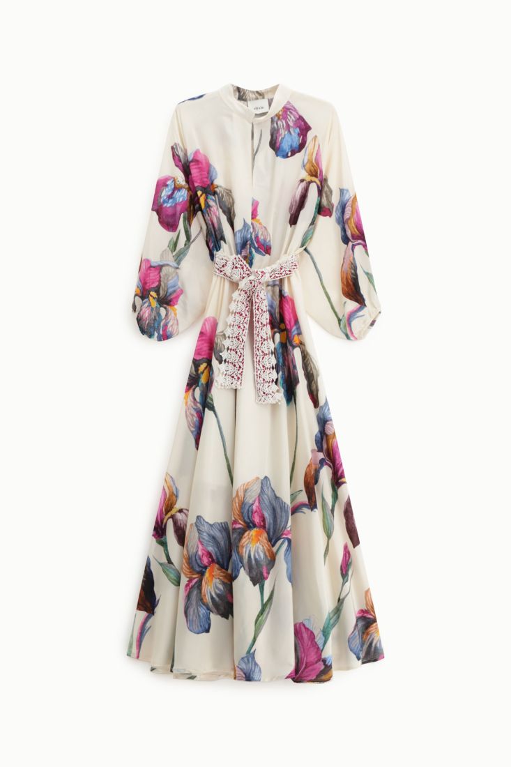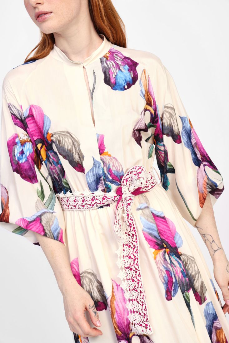 Această rochie lungă oferă o siluetă fluidă sublimată de o curea din dantelă delicată. Imprimarea florală aduce o notă de prospețime și feminitate. Ideală pentru evenimente, vacanțe sau o seară între prieteni.