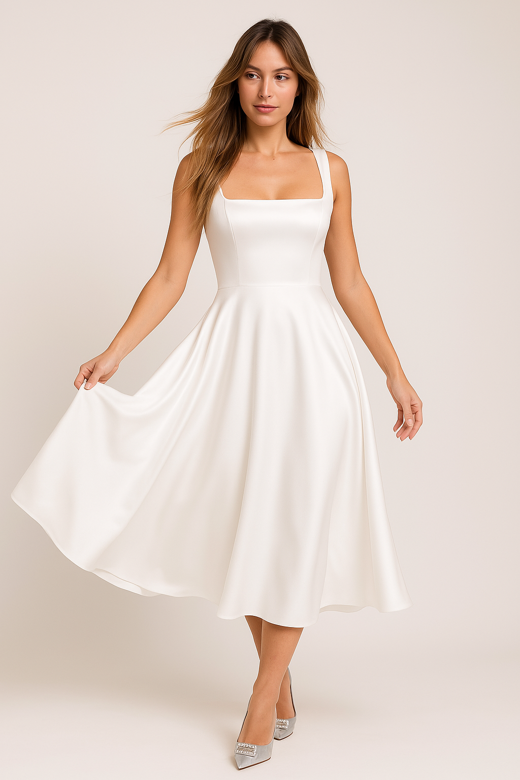 DE CE SĂ ALEGEM ROCHIA MIDI ELEGANTĂ CU DECOLTEU PĂTRAT?
