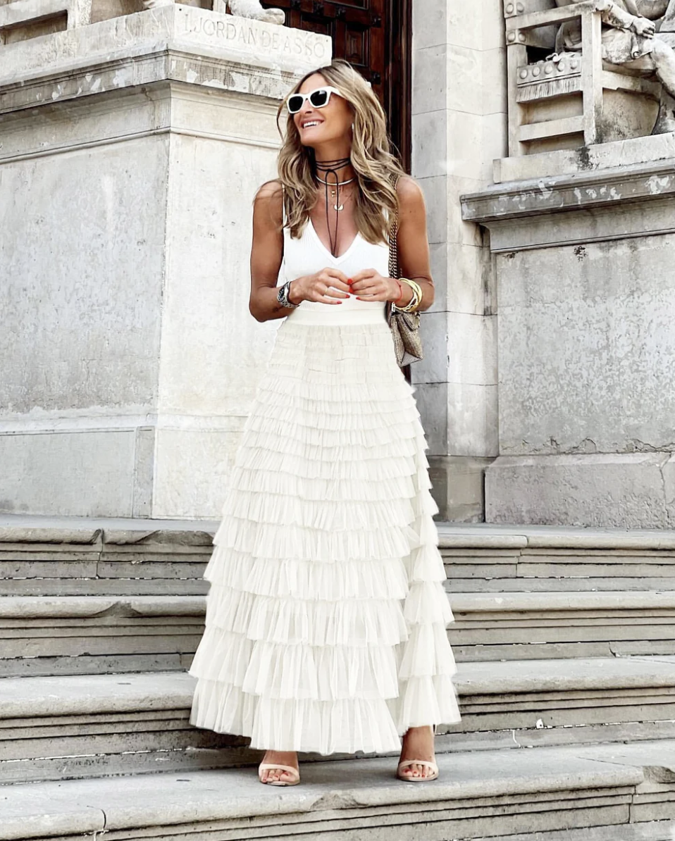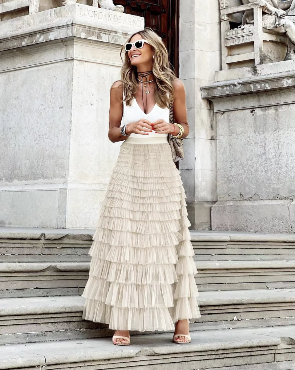 Élise|Romantisk Kjol Med Volanger För Elegant Silhuett