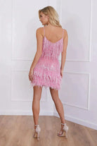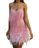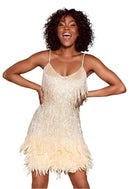 Clarisse | Mini Glamour Klänning Med Fransar Och Fjädrar